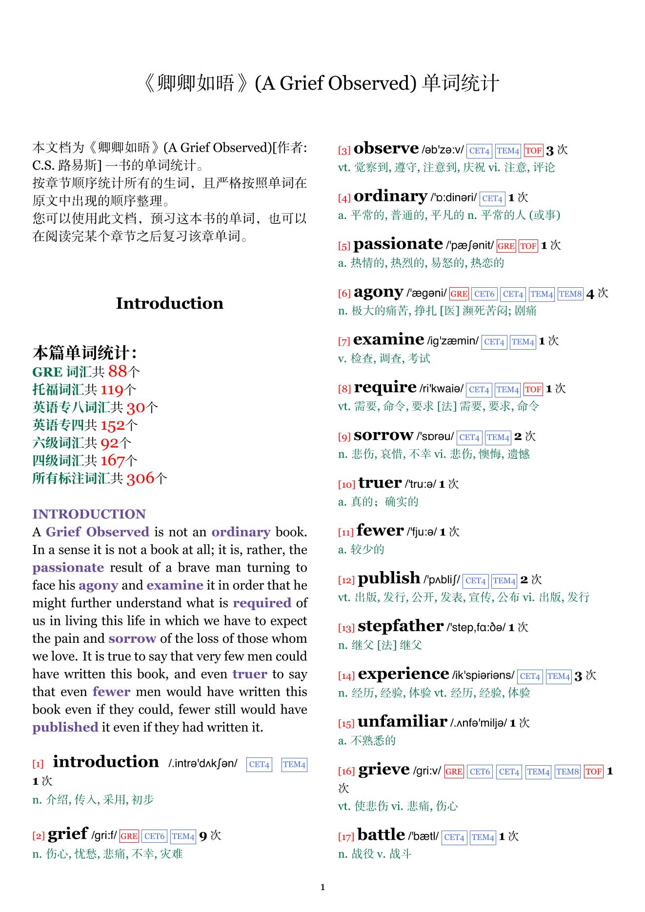 《卿卿如晤》(A_Grief_Observed)_章节单词统计_简单排版