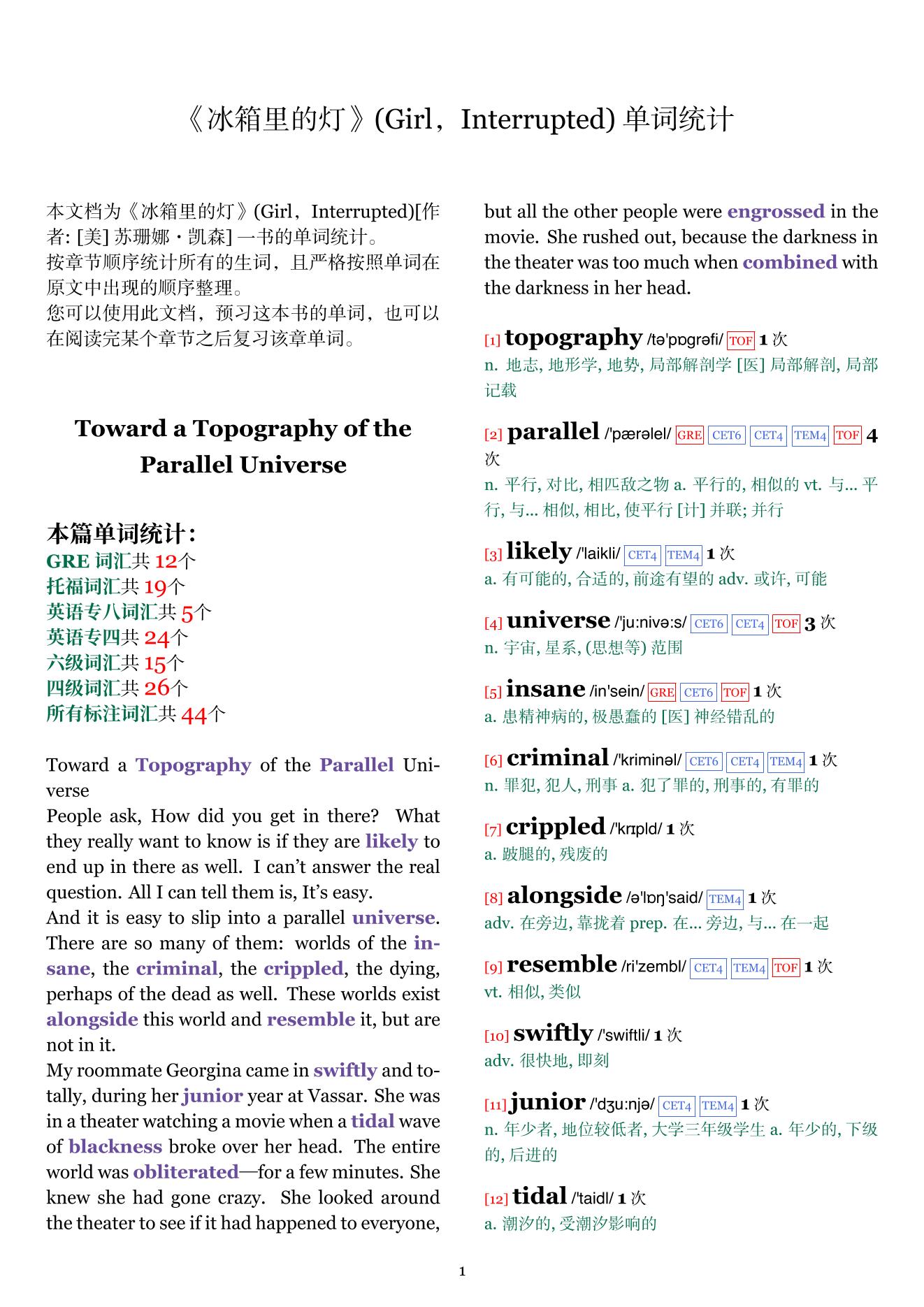 《冰箱里的灯》(Girl,Interrupted)_章节单词统计_带英文解释排版