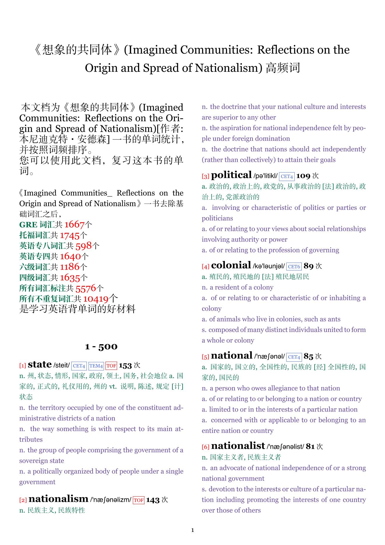 《想象的共同体》(Imagined_Communities:_Reflections_on_the_Origin_and_Spread_of_Nationalism)_高频词_按频率_带英文解释排版