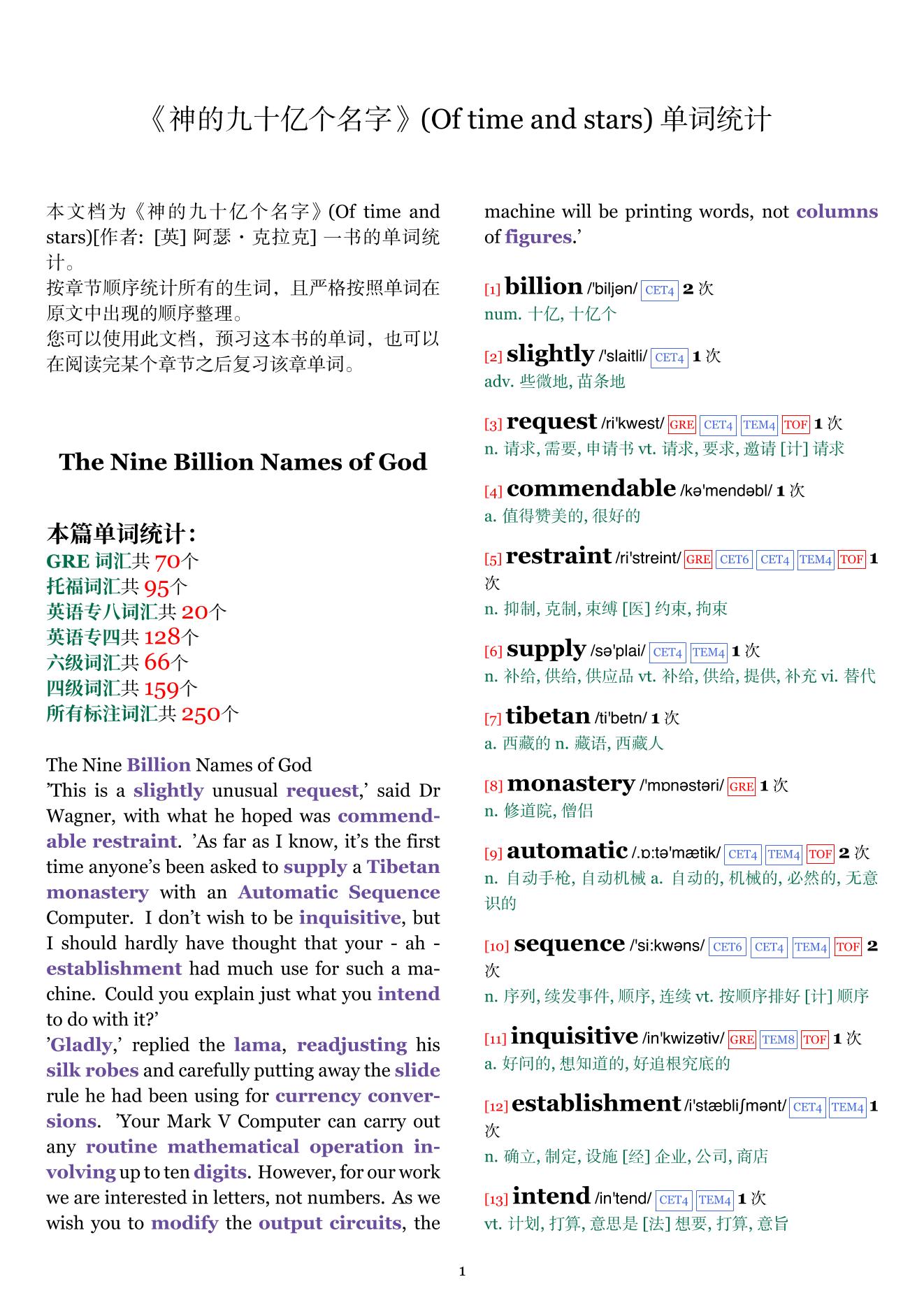 《神的九十亿个名字》(Of_time_and_stars)_高频词_按频率_带英文解释排版