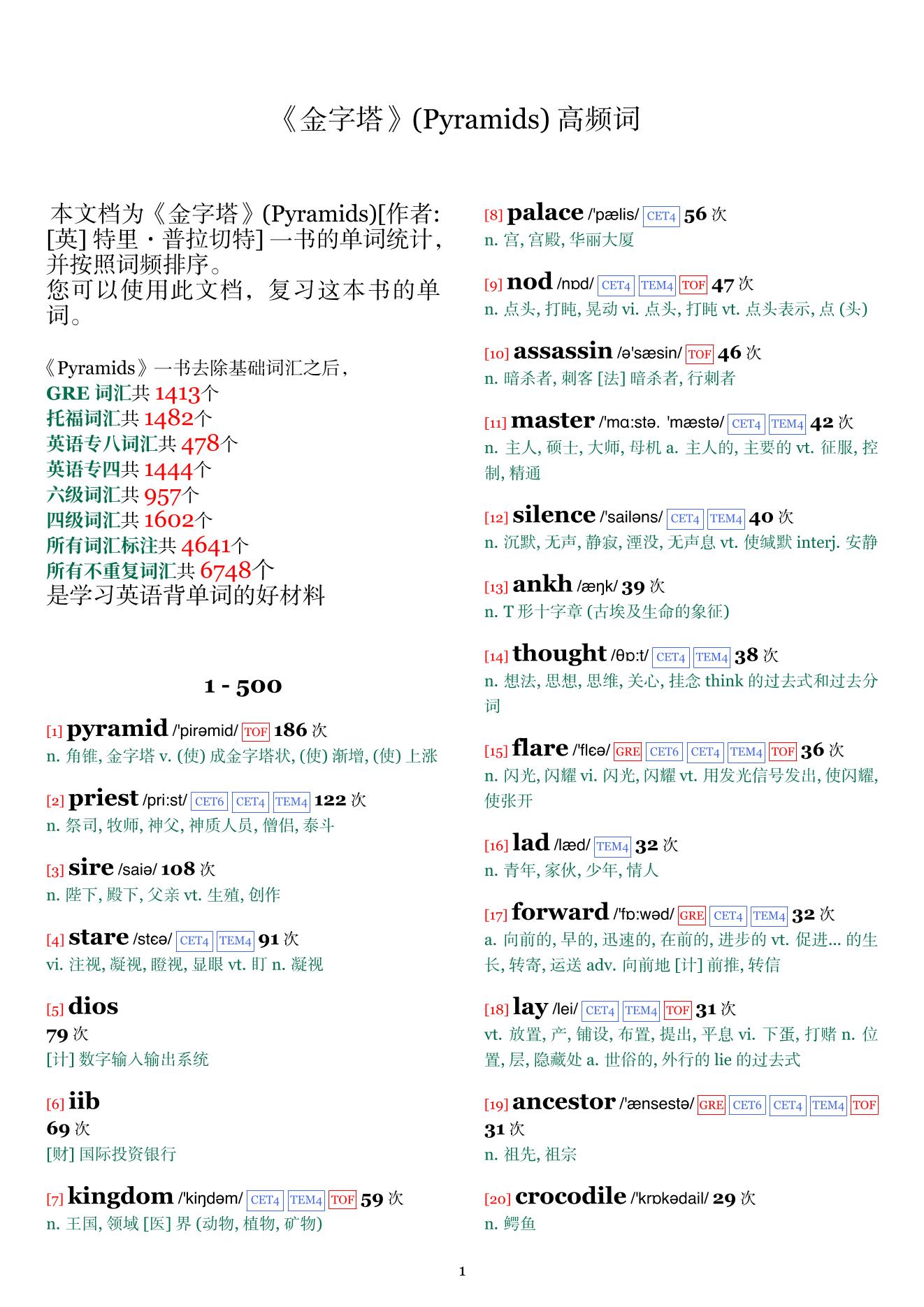 《金字塔》(Pyramids)_高频词_按频率_带英文解释排版