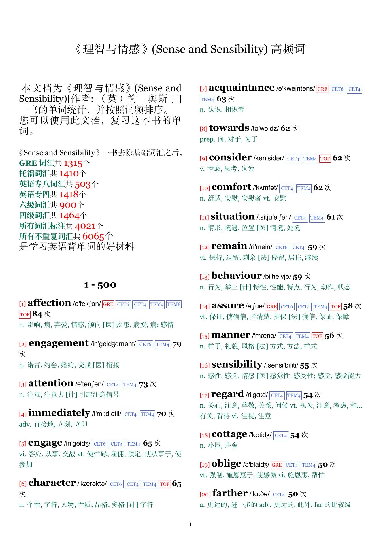 《理智与情感》(Sense_and_Sensibility)_高频词_按频率_带英文解释排版