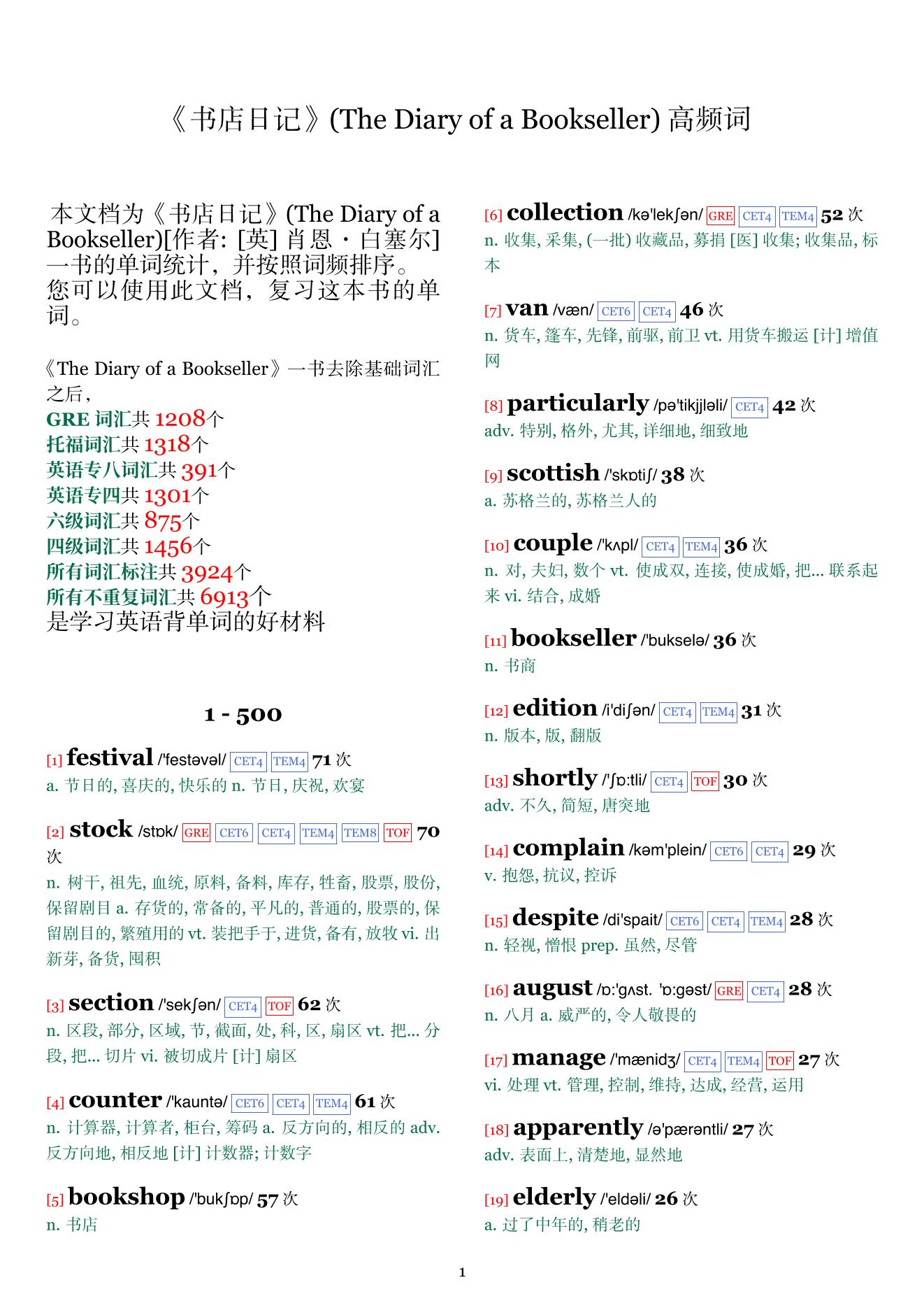 《书店日记》(The_Diary_of_a_Bookseller)_高频词_按频率_带英文解释排版